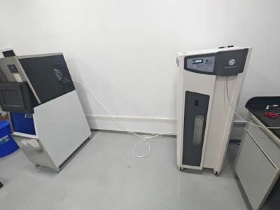 該設(shè)備配備40升儲水系統(tǒng),支持多點位智能取水,配備水質(zhì)在線監(jiān)測功能,實時顯示電導(dǎo)率、溫度等關(guān)鍵參數(shù)。滲源技術(shù)團隊根據(jù)企業(yè)實驗室的潔凈與防靜電要求,優(yōu)化了設(shè)備布局與管路材質(zhì),并提供專業(yè)操作與維護培訓(xùn)。