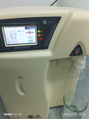 針對客戶對“零干擾”水質(zhì)的高標準需求,滲源科技提供的SYHWZ-20L超純水機采用多級預處理結(jié)合雙級反滲透及終端超純化柱集成工藝,產(chǎn)水水質(zhì)穩(wěn)定達到GB/T 6682-2008一級水標準,電阻率≥18.2MΩ·cm@25℃,TOC≤20ppb,重金屬離子含量≤0.1ppb。該設(shè)備配備20L/h高效制水能力及智能化觸控系統(tǒng),具備水質(zhì)在線監(jiān)測、耗材更換提醒及自動沖洗功能,有效滿足了檢測中心高強度、多批次的用水需求。