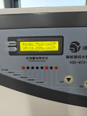 甬江實(shí)驗(yàn)室在新材料、先進(jìn)制造、綠色化學(xué)等領(lǐng)域的尖端研究中,對(duì)超純水水質(zhì)有著極高要求。針對(duì)高端科研對(duì)低離子、低有機(jī)物、低微生物的精細(xì)化控制需求,滲源科技設(shè)計(jì)的SYS-III-100L超純水機(jī)采用"多級(jí)預(yù)處理+雙級(jí)反滲透+純化罐f"集成工藝,產(chǎn)水水質(zhì)穩(wěn)定滿足18.2MΩ·cm@25℃(在線監(jiān)測(cè))的超純標(biāo)準(zhǔn),微生物含量≤1cfu/mL,微顆粒物≤1個(gè)/ml,可完全滿足高分辨率電鏡、光譜分析、納米材料合成、微納制造等高精度實(shí)驗(yàn)的嚴(yán)苛用水需求。
