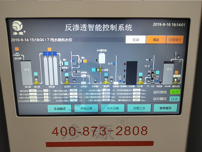 滲源SYEL超純水系統(tǒng)控制面板